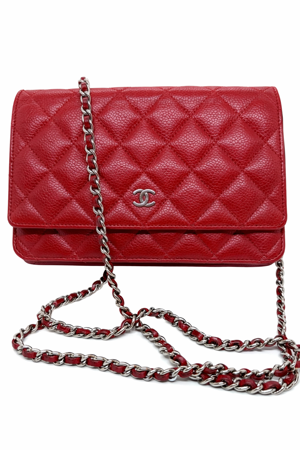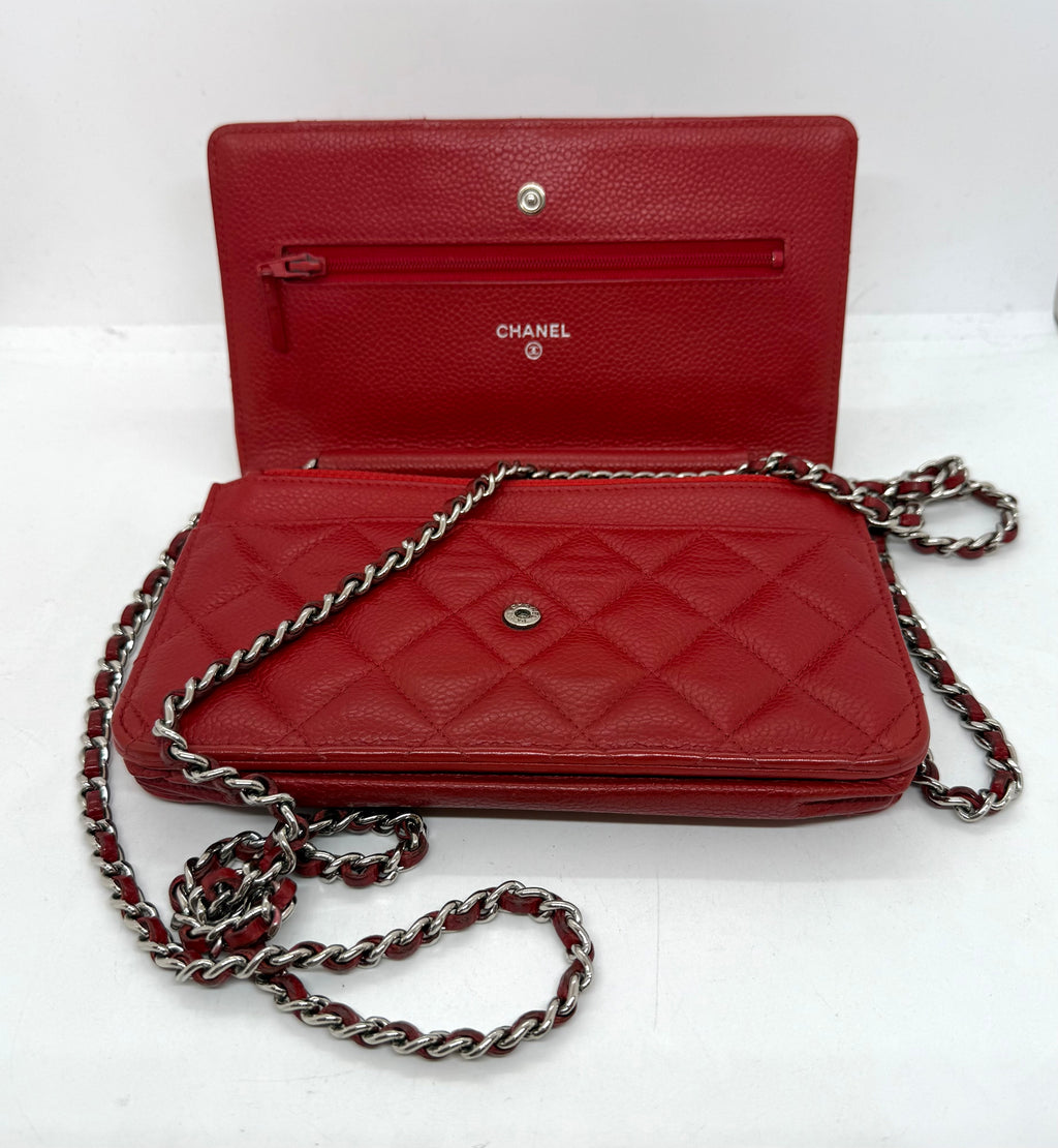 Chanel Red Quilted Wallet On Chain