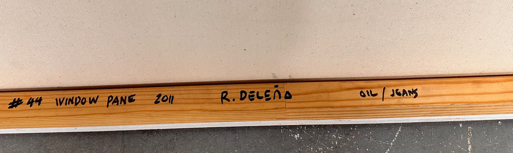 Roni Deleno "Window Pane" original abstract mixed media oil painting. Inspired by Mark Rothko's style, this artist has given his work a modern twist by adding denim jeans into the painting.  Painted on a box canvas.